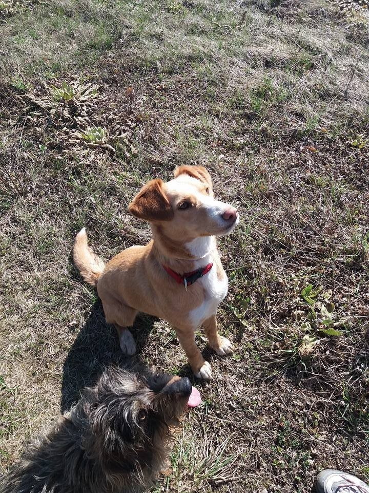 "Sziasztok, Ő Panni. Körülbelül másfél éves ivartalanított keverék kutyus, aki szerető gazdit keres magának. Alapvetően nyugodt természetű, türelmes és nagyon könnyen tanul. Éles eszű, feltűnően okos. Nagyon szeret játszani, főleg labdával futkározni. Nagy a mozgásigénye, de valószínűleg lakásban tartották, mert szobatiszta, nyugodt és otthonosan közlekedik. Minden apróságra figyel, ami körülötte történik. Más kutyusokkal barátságos és imád jatszani velük. Lehetséges, hogy autóból rakták ki, mert a mozgó járműveket kergeti. Ideiglenesen befogadtuk, de családi okok miatt sajnos nem tudjuk megtartani.Olyan gazdit szeretnénk találni Panninak, akinek van ideje foglalkozni vele, elvinni kutya-pajtikhoz, akikkel tud játszani és még a kirándulásokkor sem hagyják otthon. Akinek nem nyűg egy aktív - barátságos - intelligens kutya"- írja Facebook-oldalán az Állatvédő Egyesület Veszprém.