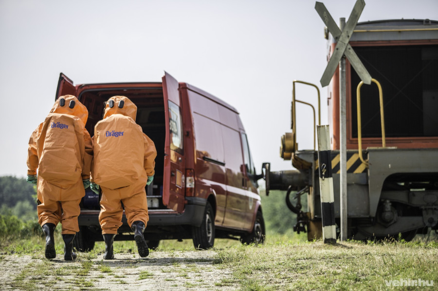 A kárhelyparancsnok munkáját mindvégig támogatta a katasztrófavédelmi mobil labor állománya is, akik a veszélyes anyag minőségének, mennyiségének és tulajdonságának meghatározásában vállaltak kulcsszerepet. A sérültek kimentése teljes légzésvédelem mellett sikeresen megtörtént, ezután pedig sor került a gyakorlat záró mozzanatára, amelynek keretében a székesfehérvári és a veszprémi daruk egy közös emelési gyakorlatot hajtottak végre, egy a feltételezés szerint kisiklott vasúti szerelvény segítségével.