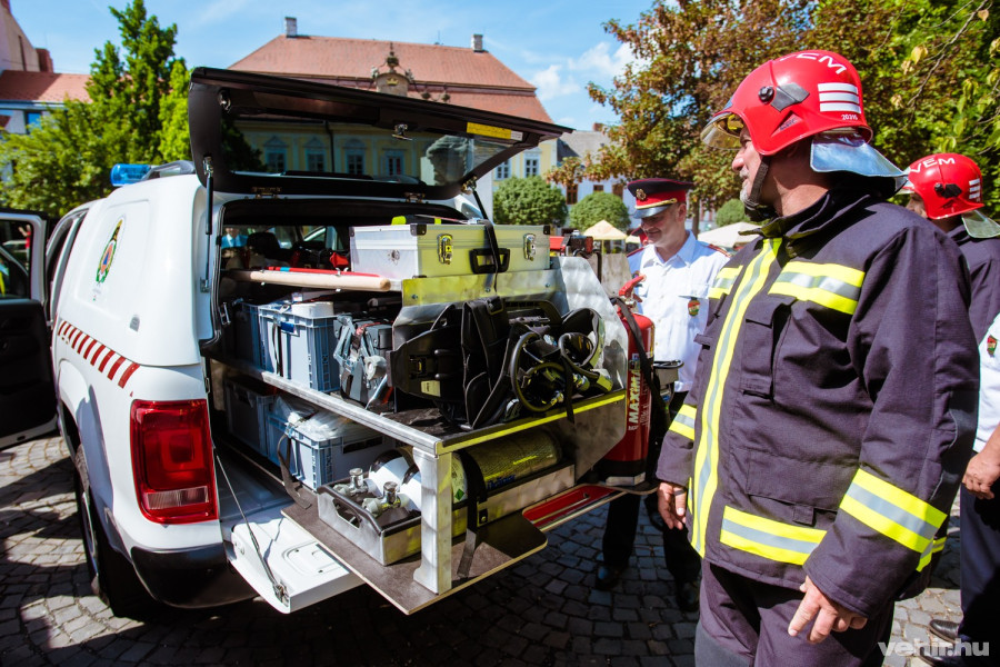 A Veszprémbe érkezett új fecskendő elődjénél kétszer több vizet tud a helyszínre szállítani, és gyorsabban is megérkezik a káreseményhez. Hasonlóan jó szolgálatot fog tenni az a Volkswagen Amarok műveleti szolgálati gépjármű is, ami egy tizenhat éves gépkocsit vált le a tűzoltó laktanya garázsában.