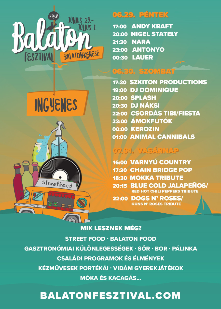 3 nap, 18 fellépő, az első igazi szabadtéri UV party, közösségépítő rekordkísérlet, gasztronómiai különlegességek, családi programok és élmények páratlan balatoni környezetben. Ez a Balaton Fesztivál, Balatonkenese első igazi nyári programja 2018-ban. A belépés idén is ingyenes, a programot második alkalommal rendezik meg a Balaton parti városban.