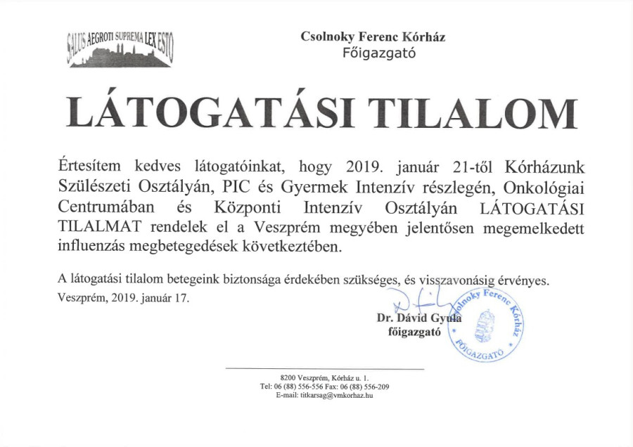 Látogatási tilalom a megyei kórházban