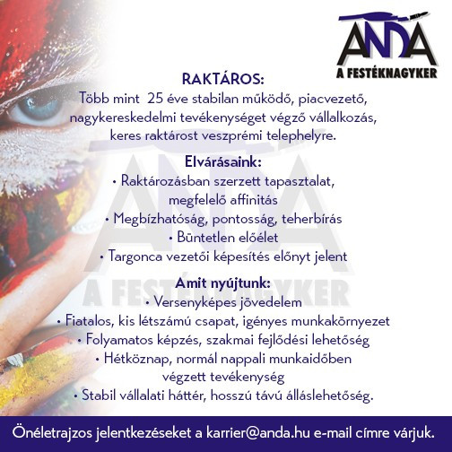 Raktárost keres az Anda Festéknagyker