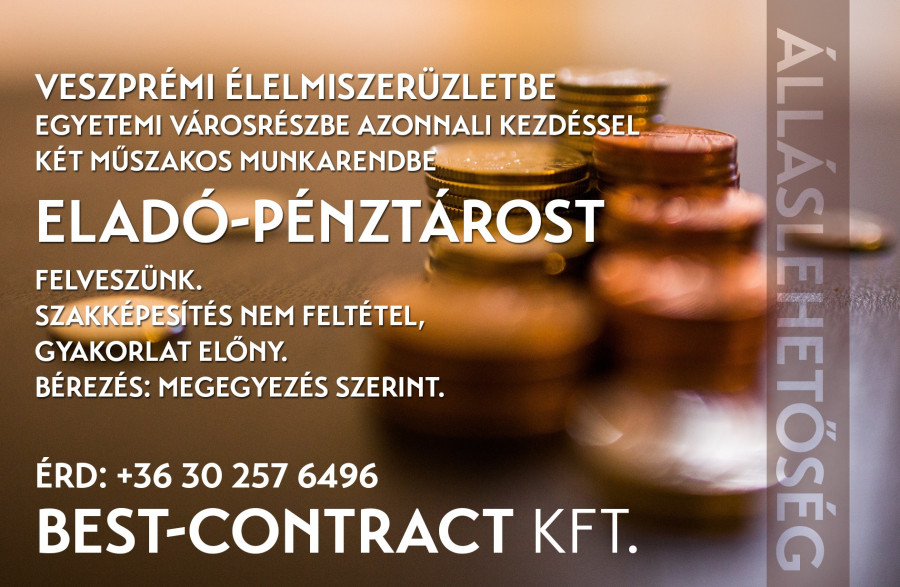 Eladó-pénztárost keresnek élelmiszerüzletbe