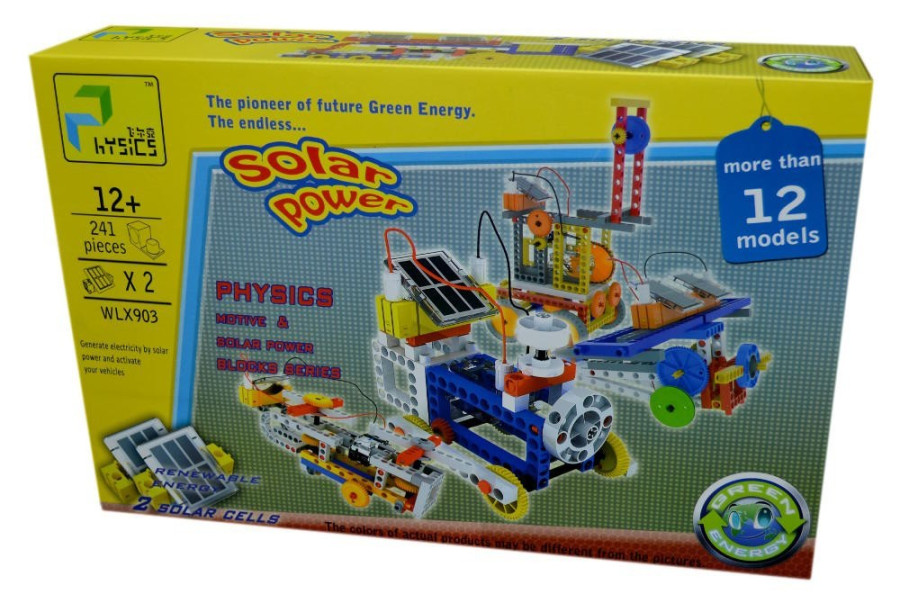 A napelemes oktató építőjáték 12 modellt tartalmaz. 2 napelem panel gondoskodik az energia ellátásról. A képes útmutató segít megépíteni a gyerekek által megálmodott robotot vagy éppen járművet, ahogyan a fantáziájuk szárnyra kap.
