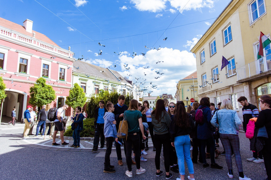Ezen üzeneteket egy köztéri látványos formában, egy szabad madárcsapatot szimbolizálva mutatja be a közönségnek.