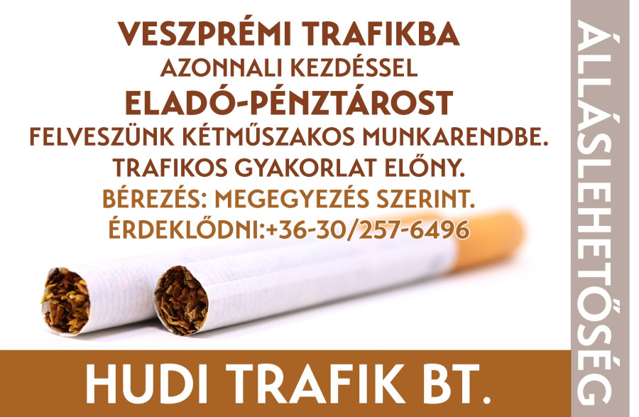 Eladó-pénztrost keresnek trafikba