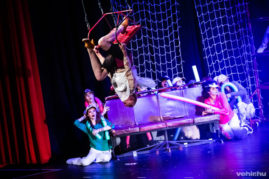 A régi típusú játszóteret idéző díszlet (mászókák, hinta) és az Ikarus ülésekből kialakítótt széksor egy korszakot idézett miközben formavilága és mozgathatósága miatt minden jelenet sokszínű eszköztárral, kreatívan és élvezhetően alakította a színpadképet.