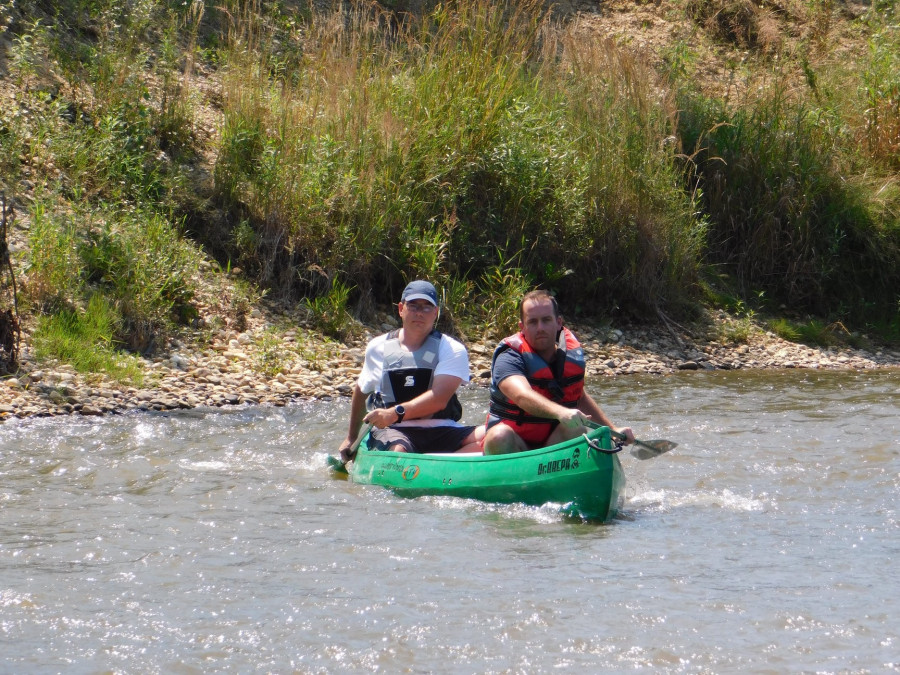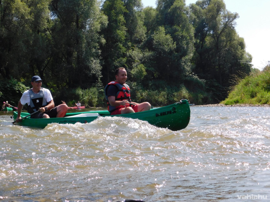 Ezután kilométereken keresztül könnyű szakasz következett, mivel a szombati nap felénél lévő magyarlaki gát visszaduzzasztja a vizet, emiatt a folyó is lassan folyik. Az új élmény, a jó társaság és a természet képes volt flow-élményt okozni, így észre sem lehetett venni, hogy már 2,5 órát eveztünk! Ha úgy tartotta kedvünk, megálltunk, kikötöttünk, fürdőztünk egy kicsit, majd haladtunk tovább.