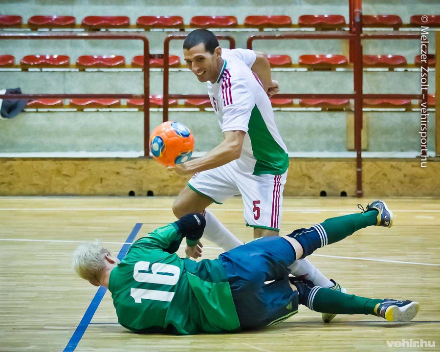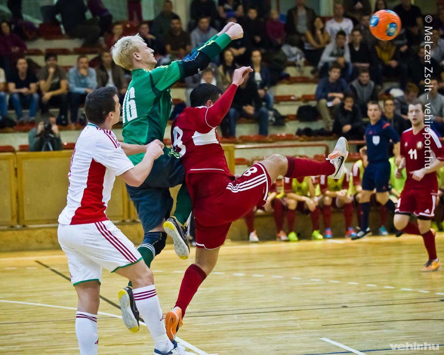 Az első félidőben tompán, sok hibával futsalozott a házigazda, így elsősorban a jó felépítésű játékosokból álló vendég alakulat akarat érvényesült a játéktéren. A 9. percben aztán a vezetést is megszerezték egy közeli szabadrúgás végén. Negyed óra elteltével pedig meg is duplázta előnyét a belorusz együttes, miután Lódi szerencsétlen mozdulattal a saját hálójába fejelte a játékszert.