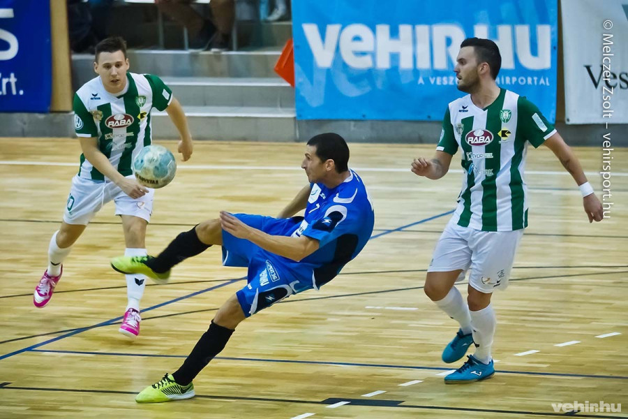Hatalmas küzdelem és jó iram jellemezte a találkozót, amelyen a bakonyiak nagyon fegyelmezetten futsaloztak. A 15. percben aztán hiba csúszott a hazaiak védekezésbe, Palomeque passza után így Lódi közvetlen közelről bevette Reveland kapuját (0-1). A győriek a folytatásban is többet birtokolták a labdát, s többször is tudtak veszélyeztetni. A túloldalon pedig Boromisza Dániel előtt adódott egyenlítési lehetőség, de egyik háló sem rezdült már meg a szünetig.