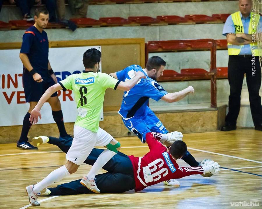 A futsal élvonal 1-6. helyért zajló rájátszásának 7. fordulójában a tabella harmadik helyén álló Haladás a szintén kilencpontos, negyedik helyezett Veszprémhez látogatott. Lévén, hogy a két gárdát nyolc egységgel üldöző Aramis pénteken kikapott a címvédő Berettyóújfalutól, a győzelem mindkét fél számára azzal az eséllyel kecsegtetett, hogy lépéselőnybe kerülhet a bronzéremért dúló csatában.