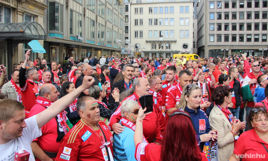 Az eseménynek a hirtelen megeredő eső vetett végett, amelyet aztán néhány perc múlva napsütés váltott. Túlzás lenne egyébként azt állítani, hogy kellemes az időjárás, nagyjából 15 fok lehet a Rajna-parti városban. „Nem gond, amíg van a csetényi pálinkánkból” – jegyezte meg mögöttem egy harmincas veszprémi szurkoló, majd töltött is egy kupicával a körülötte álló társaságnak az egyik üzlet lépcsőjén.