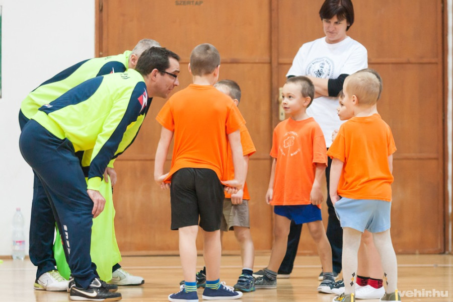 A labdarúgó gyakorlatokat az NB I-ben szereplő 1. Futsal Club Veszprém edzői és játékosai vezényelték. Közel negyven nagycsoportos óvodás töltötte meg önfeledt jókedvével a csarnok játékterét. A csoportokba osztott gyerekhad különböző gyakorlatokban – kapura lövésben, labdavezetésben, célba lövésben, ügyességi feladatokban – próbálhatták ki tudását.