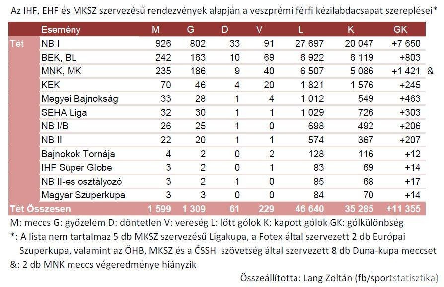 A veszprémi klub dicsőséges múltjának minden momentumát gondosan rögzítő Lang Zoltántól megtudtuk, hogy a szombati lesz a bakonyiak 1600. tétmeccse. Az alábbi részletező táblázatokból az is kiderül, hogy mely sorozatokban milyen mutatókkal büszkélkedhet az egyesület, s hogy az edzők hány alkalommal dirigálhatták a gárdát. A térképen pedig az látható, hogy hol rendezték az eddigi találkozókat.