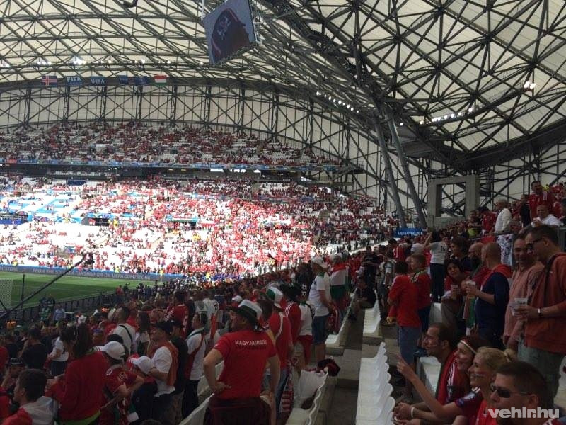– Szombat reggel továbbindultunk egy közelebbi szálláshelyre, ahonnan délután 1 óra körül mentünk a városba. A stadion közelében egy sugárúton tudtunk leparkolni más magyar szurkolók segítségével. Akkor már rengeteg honfitársunkkal találkoztunk, akik a stadiontól nagyjából tizenöt percre található szurkolói zóna felé tartottak. Így tettünk mi is, de a korai időpont miatt ekkor ott még nem tapasztaltunk különösebb „felfordulást”. Három órával a kezdés előtt indultunk a stadionhoz, ahol már rengeteg magyarral találkoztunk. A rendőrök által kísért ultrák az egyik teljes sugárutat elfoglalták, s elképesztő atmoszférát teremtve – tűzijátékkal felszerelkezve – vonultak a Velodrome felé – mesélte Schmidmajer Ádám, aki több veszprémi ismerősét is felfedezte a lelátókon.