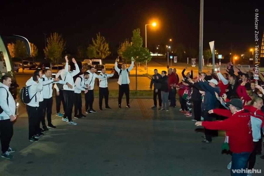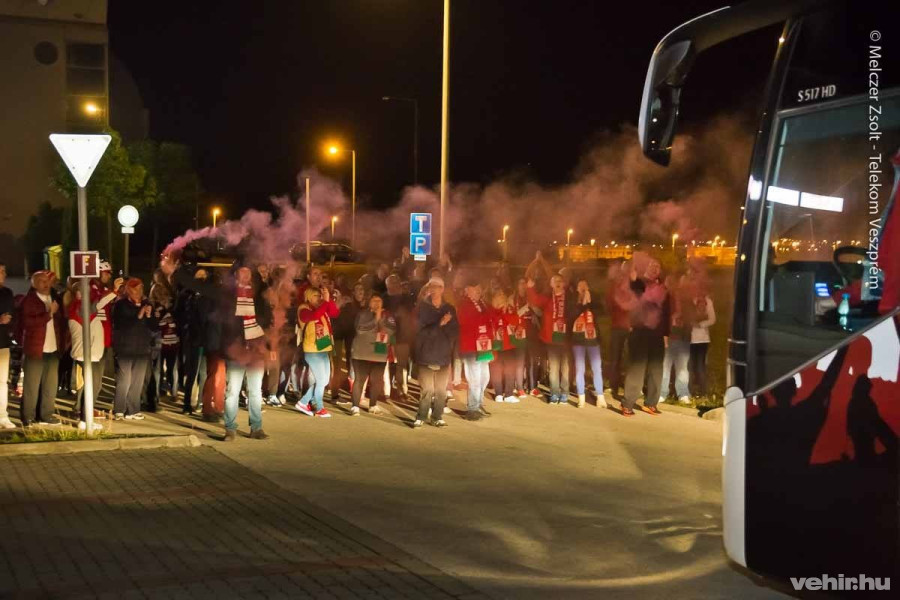 A felhívást sokakhoz eljutott, így a hajnali 3 óra körül begördülő csapatbuszt a nem éppen barátságos időpont ellenére is sokan fogadták a Veszprém Arénánál.