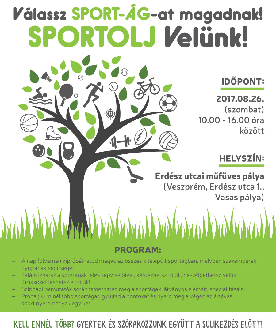 A sport, a mozgás és az egészséges életmód hirdetésére, népszerűsítése érdekében együttműködésre hívja a veszprémi és környékbeli egyesületeket a Veszprém Megyei Testnevelő Tanárok Egyesülete (VMTTE), amely augusztus 26-án egész napos rendezvényt szervez az Erdész utcai sportkomplexum területére.