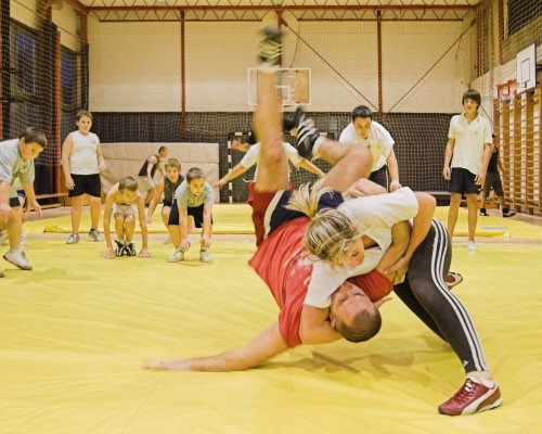 A tizenöt éves lány jól érzi magát az egyébként csupa fiúból álló veszprémi birkózó csapatban.