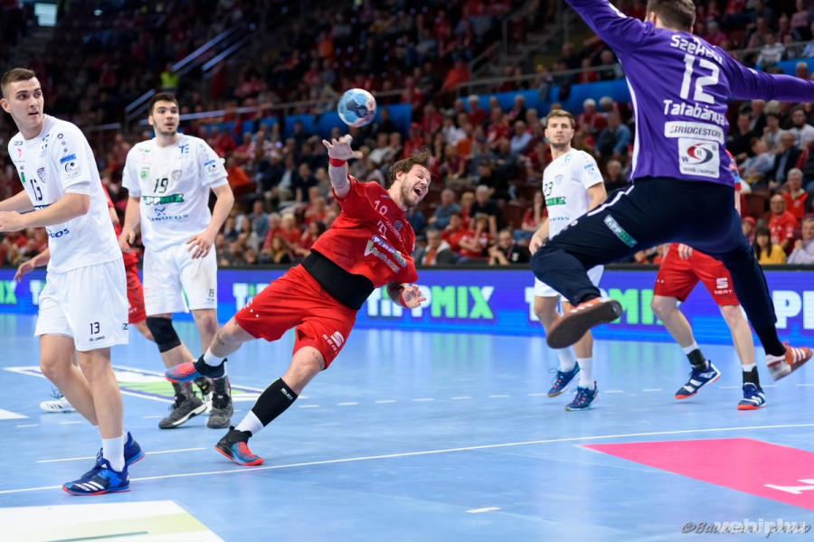 A mieinknél Strlek, a túloldalon pedig Juhász és Sipos cipelte hátán együttesét. A meccs háromnegyedénél Grigoras kettős emberhátrányban is betalált (24-20). Sőt, Ilyés kiskiállítása után hárman maradtak a vendégek, amit azonnal góllal büntetett Strlek.
