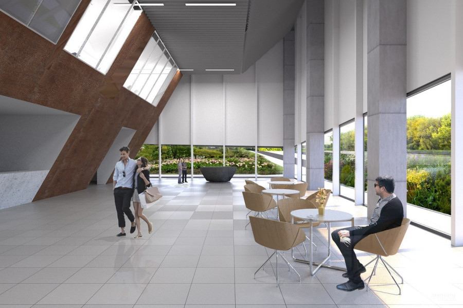 A tervezők büfét is megálmodtak az épületbe, valamint egy gyermekmegőrzőt, ahol animátorok foglalkoznak a kisgyermekekkel, amíg a szülők pihennek, sportolnak.