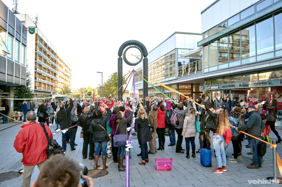 A 12 szalag a kezdeményezéshez csatlakozó 12 intézményt képviselte – többek között a Pannon Egyetemet, a Laczkó Dezső Múzeumot, a Művészetek Házát, a Veszprém Agórát, a Levéltárat, a megyei könyvtárat, a Tourinformot és az Algida Jégkrémgyárat –, a szervezők pedig a flashmobbal arra szerették volna felhívni a figyelmet, hogy már most elindult az összefogás és az együttműködés, a ténykedés, amiben szeretnék, ha a civilek, az utca emberei is részt vennének – tudtuk meg Kővári Edittől, a Pannon Egyetem Gazdaságtudományi Karának docensétől és EKF referenstől.