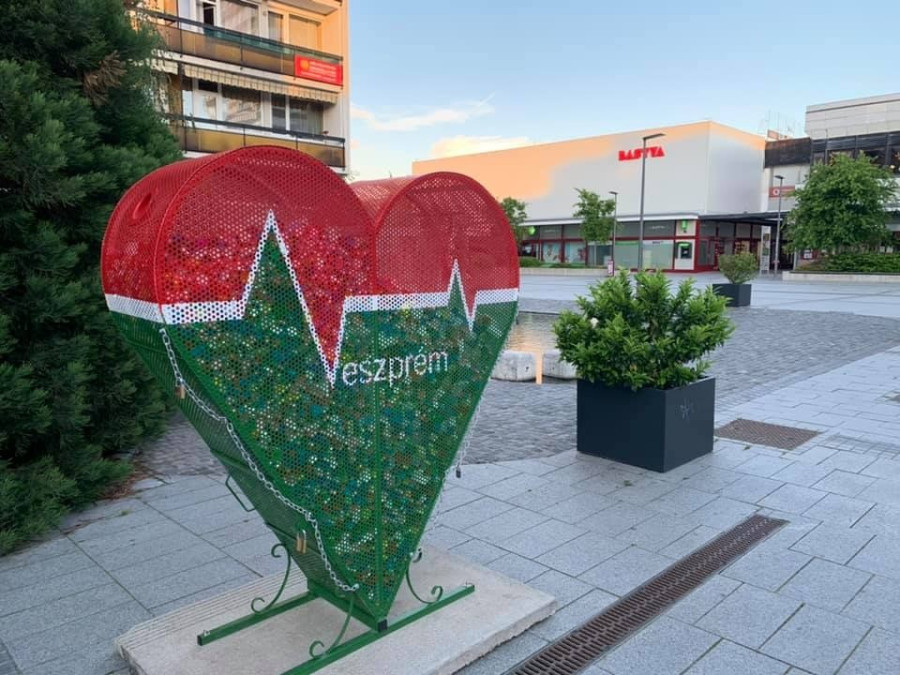 Egy hete adtunk hírt arról, hogy a veszprémi belváros új dísszel gazdagodott, egy színes kupakgyűjtő szívet helyeztek el a nagyposta előtti téren.