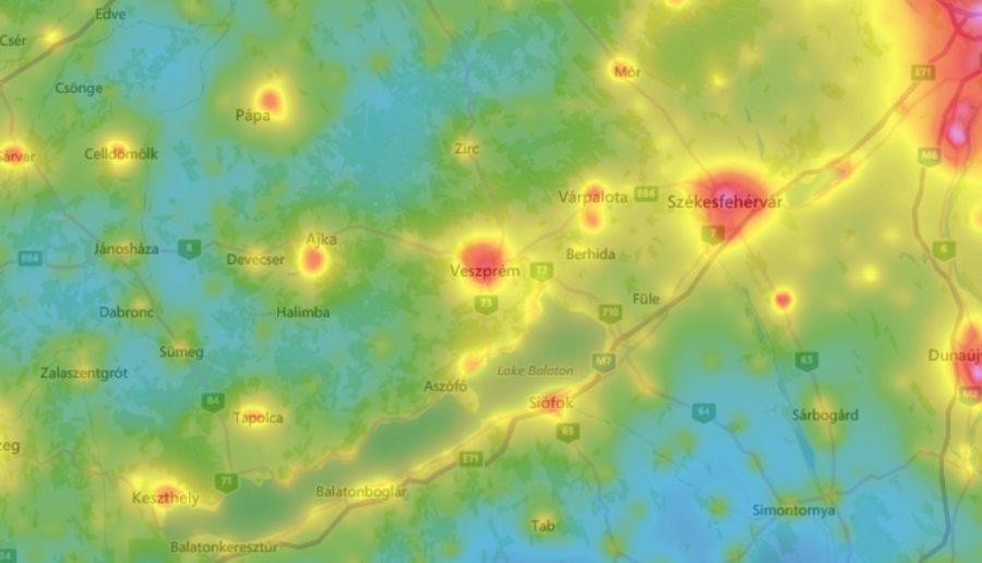 A világ fényszennyezettségét bemutató térkép jó kiindulási alap lehet, ha erre alkalmas helyet keresünk. A fekete színnel jelölt területek azok, ahonnan a maga természetes valójában láthatjuk az éjszakai égboltot – ilyen hely Magyarország területén nincs. A kék részeken minimális fényszennyezettséggel kell megküzdenünk: a legjobb hazai helyek a Zselic, a Hortobágy és a Körös-Maros Nemzeti Park, megyénkben pedig a Magas-Bakony, Bakonybél környéke várja a fény elől menekülőket. A térképen zölddel jelölt részek a falusias körzetek, itt a horizont-közeli égitestekről már le kell mondanunk. Az alábbi fotó is egy zöld területen készült a Bakonyban: Budapest annyira okádja magából a fényt, hogy majdnem száz kilométerre a Clark Ádám tértől is megöli a keleti láthatárt.