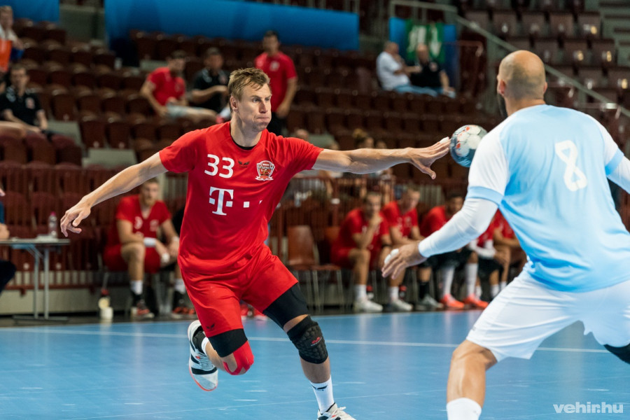 Tehát a 47. percben vezettek először a bakonyiak, akik bár küzdöttek, ám a meccshiányból adódó nehézségeiket nem tudták legyűrni. Manaszkov második hetese kimaradt, Balogh viszont belőtte a maga büntetőjét, majd átlövésből is eredményes volt. Így a hajrában is a mienk futhattak az eredmény után (54. perc: 27-28).