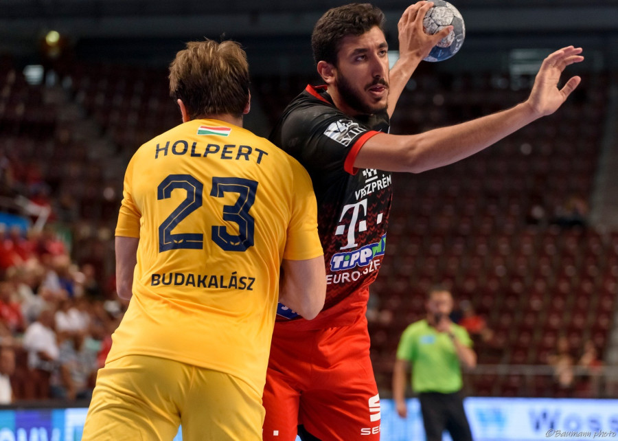 Manaszkov jegyezte az idény első hivatalos gólját, ám Boros védéseinek, valamint Koncz és Varjú találatainak köszönhetően gyorsan fordítottak a vendégek. Corrales is kiválóan kezdett a másik „ketrec” előtt, Marguc duplájával a 7. percben már 5-2-es előnynek örülhettek a hazai hívek. A Veszprém jól védekezett, a Moraes, Borozan középső védőpáros többször is blokkolni tudott. Jahia két hétméterest is értékesített, majd Corrales újabb bravúrja után Borozan hizlalta ötre a fórt (13. perc: 8-3).