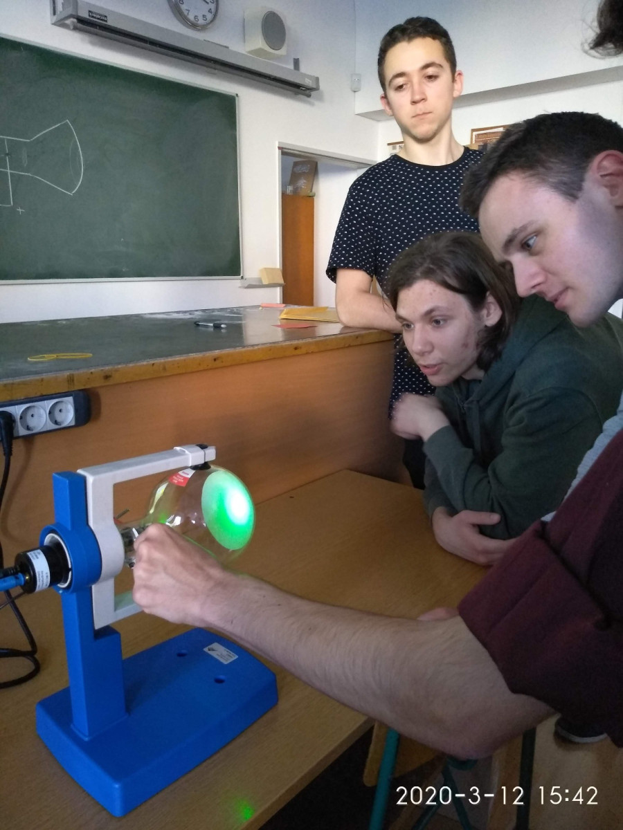 A témához szorosan kapcsolódtak azok a kísérletek is, melyeket a pályázat segítségével megvásárolt eszközökkel tudtak elvégezni: elektrondiffrakciós csővel az elektron hullámtermészetét vizsgálták, a Geiger-Müller számlálóval aktivitást mértek.