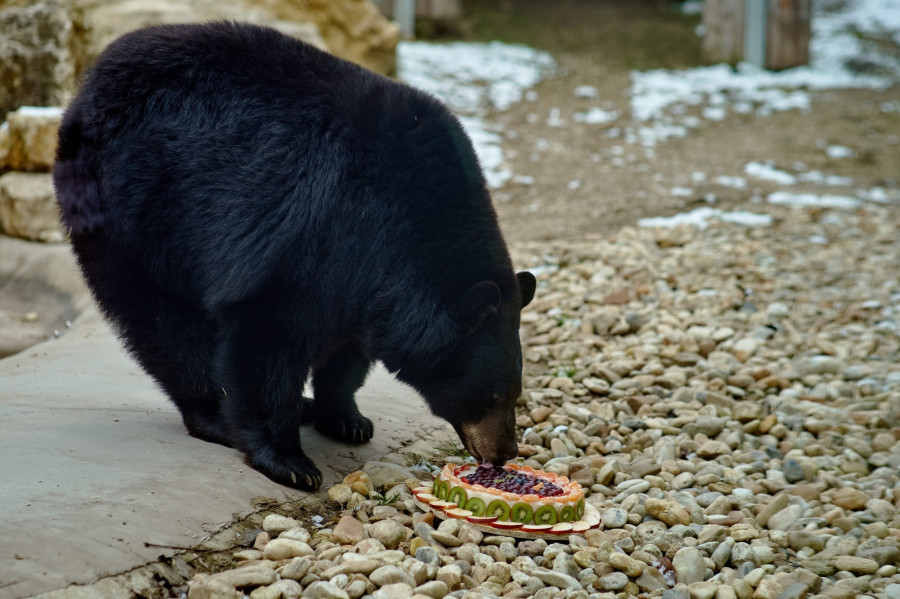 A Veszprémi Állatkert fekete medvéit gyümölcstortával lepték meg gondozóik kedden. Az Észak-Amerikában őshonos állatokkal 2016-ban találkozhatott először a közönség, és ezt a fajt hazánkban azóta is csak ebben a vadasparkban figyelhetjük meg. Noha ragadozók, a természetben táplálékuk túlnyomórészt növényi eredetű: gyümölcsök, levelek, bogyók és gombák. Az állatkertben gyümölcsökből, zöldségekből és húsból áll az étlapjuk.