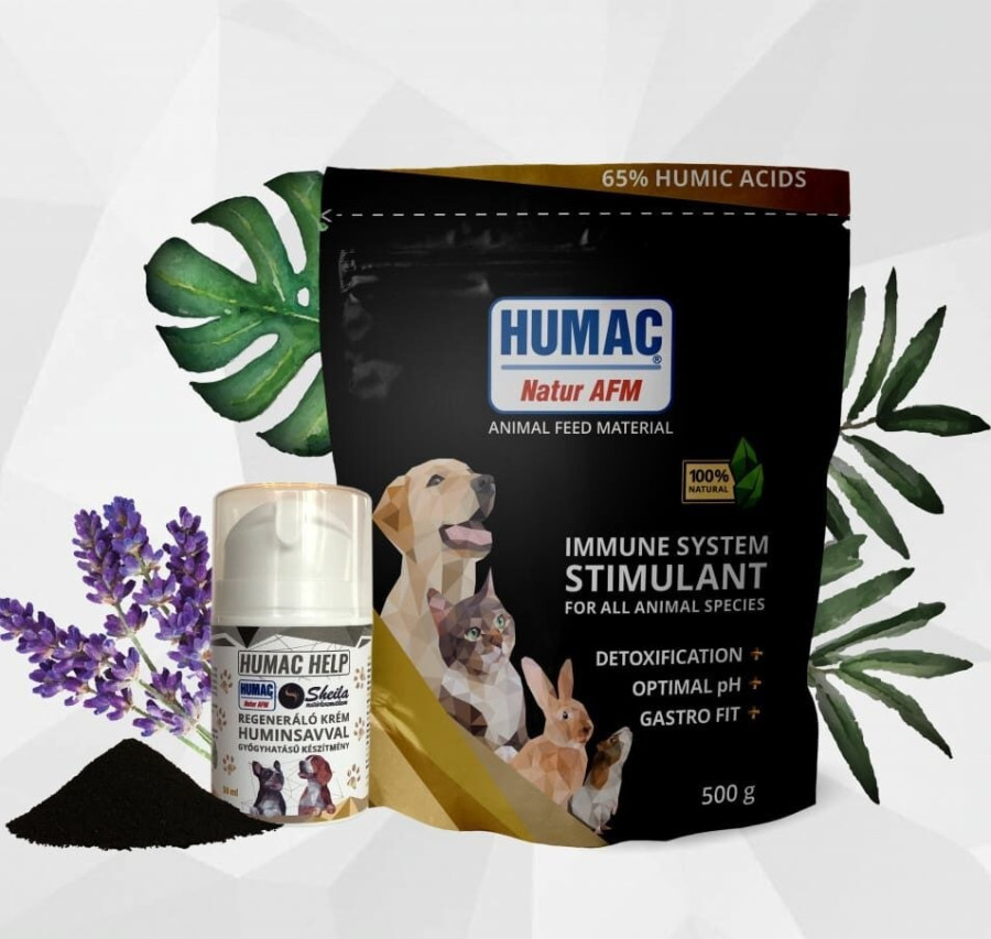 A HUMAC aktív huminsavat tartalmaz száz százalékig természetes formában, ami hatékonyan köti meg a méreganyagokat és üríti ki azokat az állat szervezetéből, még kilátástalan helyzetben is. Így a kedvenced immunrendszere saját magát gyógyítja majd meg. A napi eledelhez kis mennyiségben adagolva fejti ki hatását. Éppen ezért a HUMAC táplálékkiegészítőit nem csupán beteg háziállatoknak ajánlják az allergiás tünetek enyhítésére és immunerősítésre, de megelőzésképpen is.