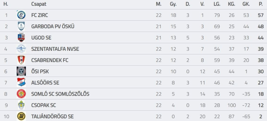 Tabella forrása: adatbank.mlsz.hu