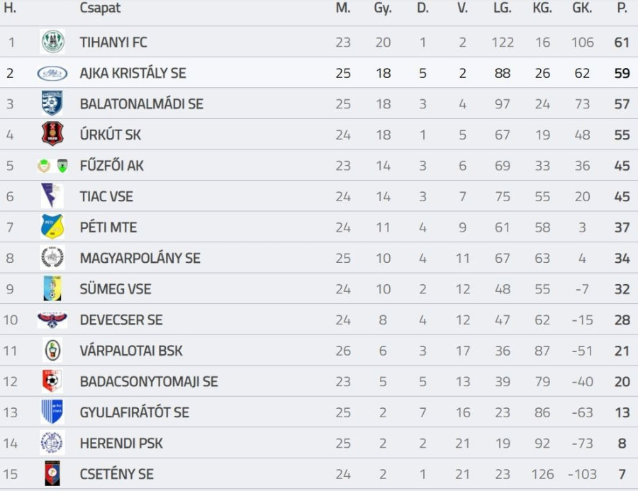 Tabella forrása: adatbank.mlsz.hu