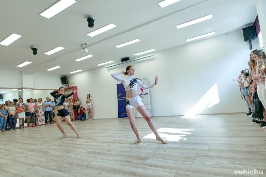 A szalagátvágást követően a stúdió tanítványai adtak műsort a megújult próbateremben. Az új helyszín a táncpróbákra alkalmas multifunkciós terem (képünkön) mellett öltözőkkel és vizesblokkal is rendelkezik.