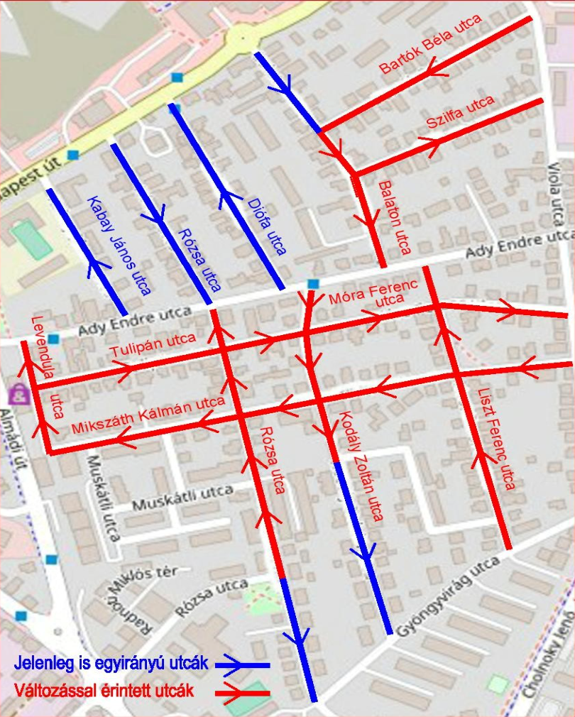 Tervben van azonban, hogy a Rózsa utca 34. előtti szakaszon 40 cm-rel csökkentik a gyalogjárdát, hogy megkönnyítsék a kikanyarodást, továbbá plusz parkolást tiltó festést alkalmaznak. Az önkormányzat egyebek mellett javasolja azt is, hogy az Ady Endre és a Tulipán utca közti szakaszát a Levendula utca felé kétirányúsítsák.