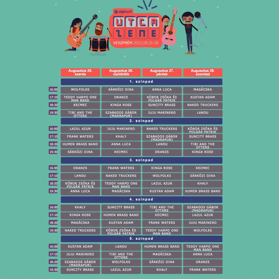 Az esti fellépőkről folyamatos tájékoztatást ígértek a szervezők. A Veszprémi Utcazene Fesztivál Facebook-oldalán közzétett posztban egy ideiglenes lejátszási lista található az idei nemzetközi fellépőkből. Itt lesz Mike Andersen, Allie Sherlock, Ezra Hesper és még sokan mások.