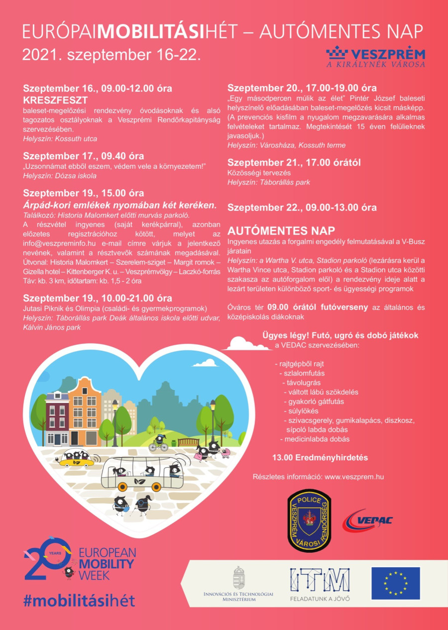 A programok a következő napokban is folytatódnak, szeptember 22-én pedig az Autómentes napon sportversenyeket is szerveznek a városban, továbbá ezen a napon ingyenesen utazhatnak a V-Busz járatain azok, akik felszálláskor bemutatják autójuk érvényes forgalmi engedélyét.