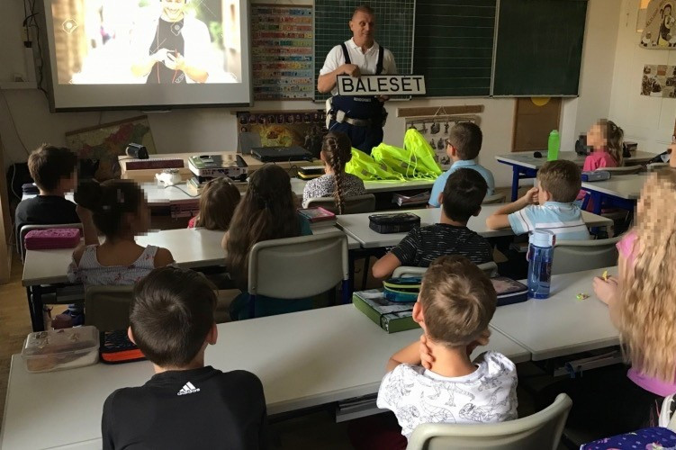 Az előadáson a diákokkal közösen megbeszélték az éleslátás és széles látás fontosságát, amit a pulóvercsuklya felvételével prezentáltak. Átismételték a biztonságos görkorcsolyázás és gördeszkázás szabályait, valamint a bukósisak helyes használatát. Az egyenruhás kolléga megmutatta a legfontosabb KRESZ táblákat, amiket a gyerekeknek a balesetek elkerülése érdekében, valamint a biztonságos közlekedéshez ismerniük kell. Az óra végén a diákok közlekedésbiztonsági foglalkoztatófüzetet kaptak, amely általános iskolás korosztály részére tartalmaz hasznos útmutatást – írja a police.hu.