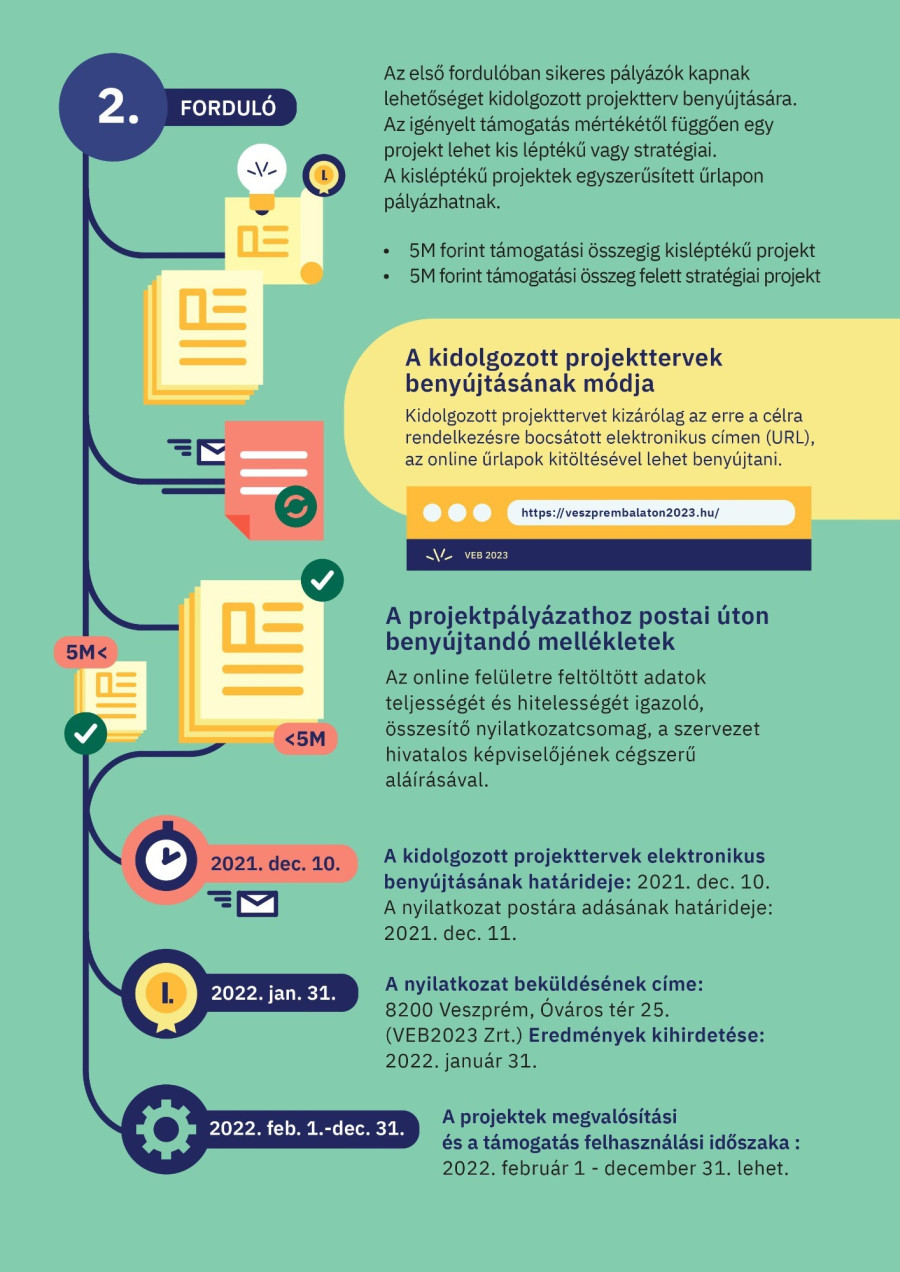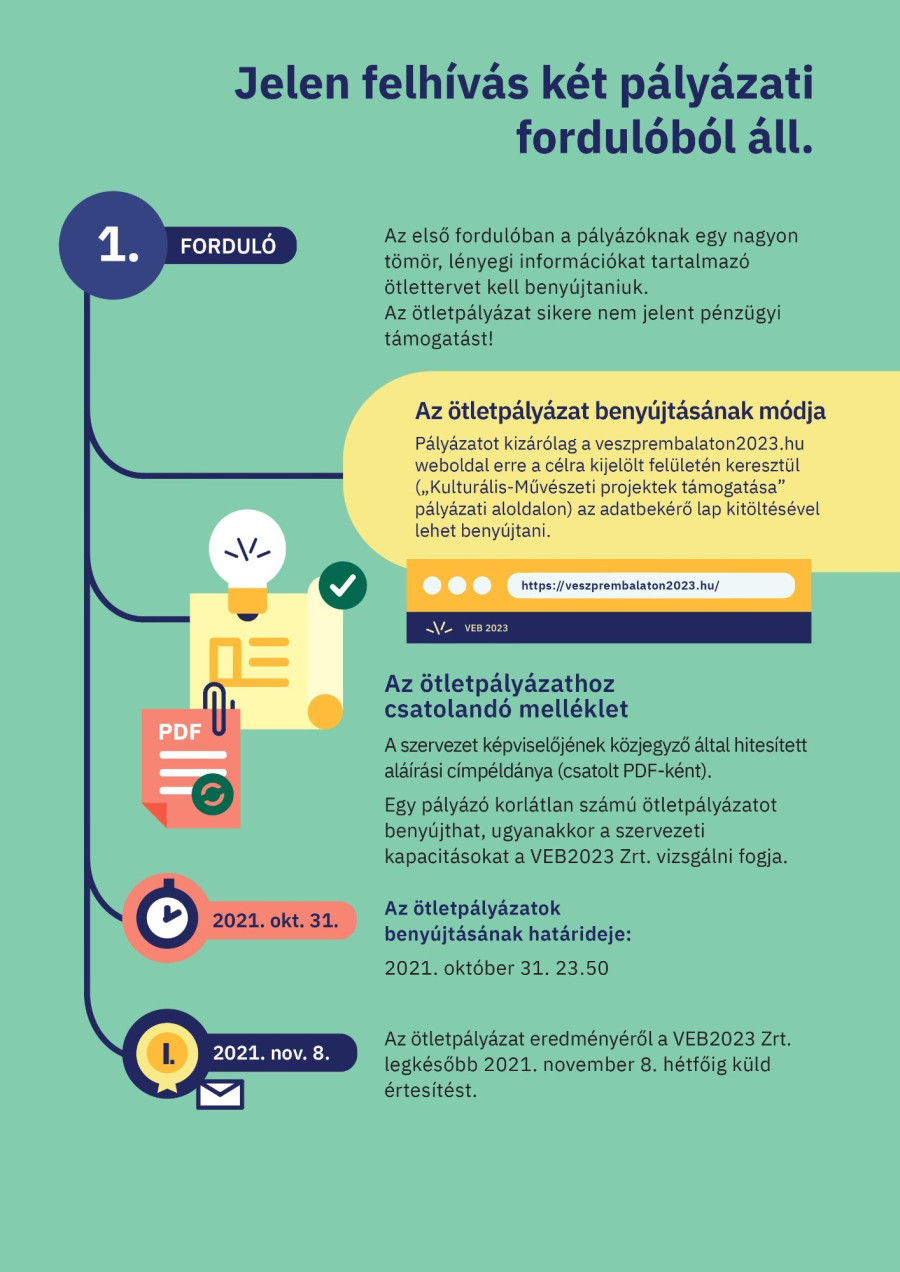 Jelentős érdeklődés esetén további online konzultációs időpontokat hirdetnek meg, és időpontot hamarosan honlapjukon keresztül is lehet foglalni. A felhívással kapcsolatos kérdésekre az alábbi címen is kaphatnak választ a pályázók: palyazat@veszprembalaton2023.hu