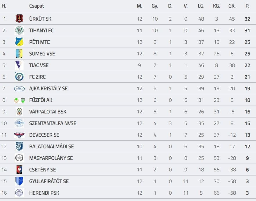 VEHIR.HU megyei élvonal, 12. forduló: