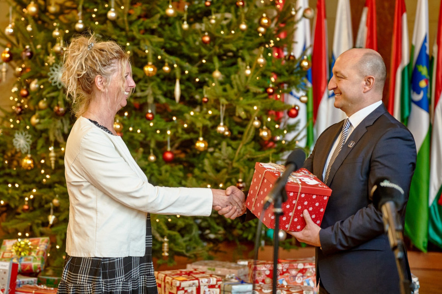 A Veszprém Megyei Kormányhivatal dolgozói negyedik alkalommal gyűjtöttek adományokat a karácsonyi időszakban. A meglepetéseknek a sümegi Napfény Segítő Központ gondozott gyermekei és több megyebeli rászoruló család örülhet, a 317 cipősdobozt kedd délelőtt Bakos Kitti, a a Napfény Segítő Központ Család - és Gyermekjóléti Központjának vezetője vehette át Takács Szabolcs kormánymegbízottól.