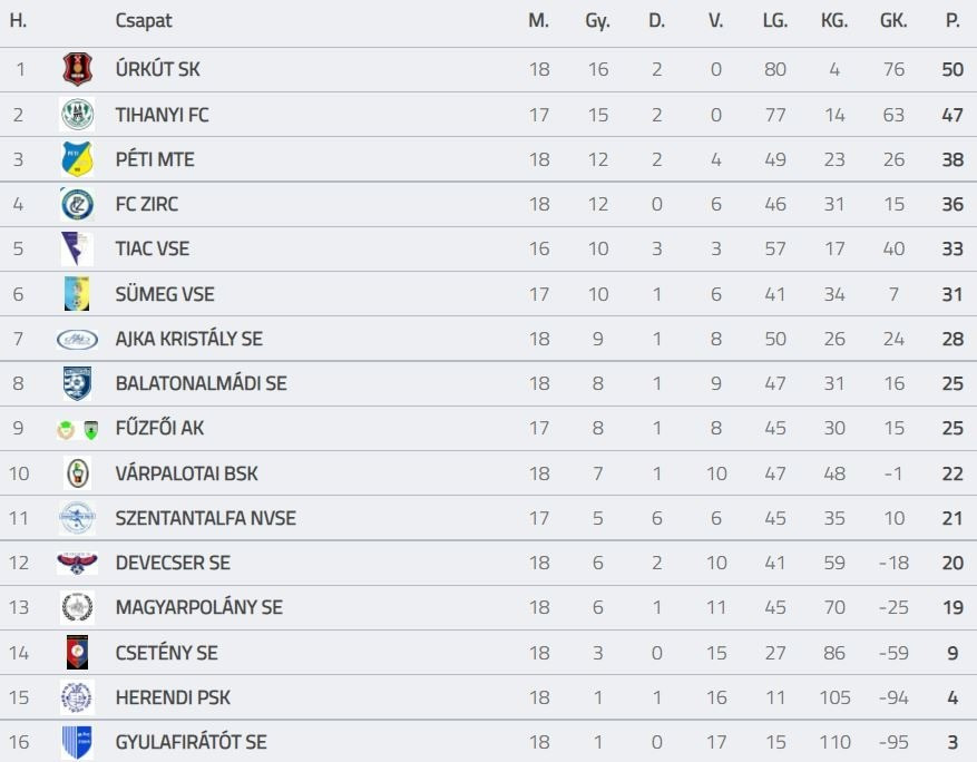 Tabella forrása: adatbank.mlsz.hu
