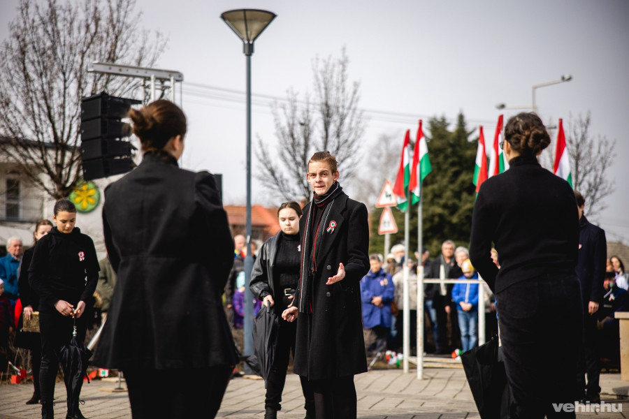 A hagyományokhoz hűen a Dózsa György-téren tartották kedd délelőtt a megyeszékhely központi Március 15-i ünnepségét. Az ünneplők közt a város vezetői, politikai és civil szervezetek, kisebbségi önkormányzatok és több kulturális és közintézmény képviselői is tiszteletüket tették.