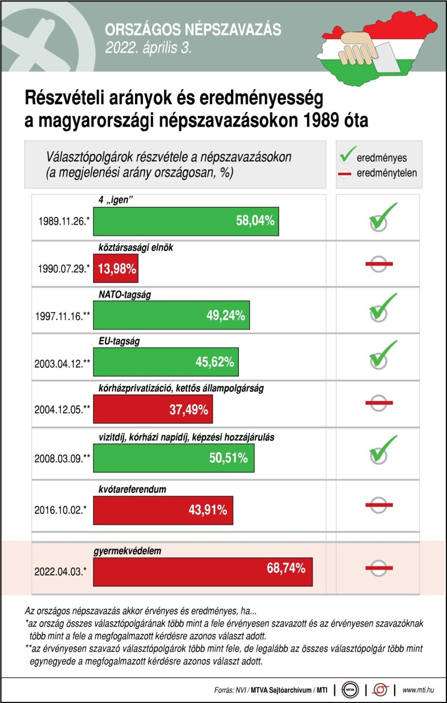 A parlamenti választás mellett népszavazást is tartottak vasárnap. Ennek eredményeit az MTI infografikái foglalják össze tömören és átláthatóan.