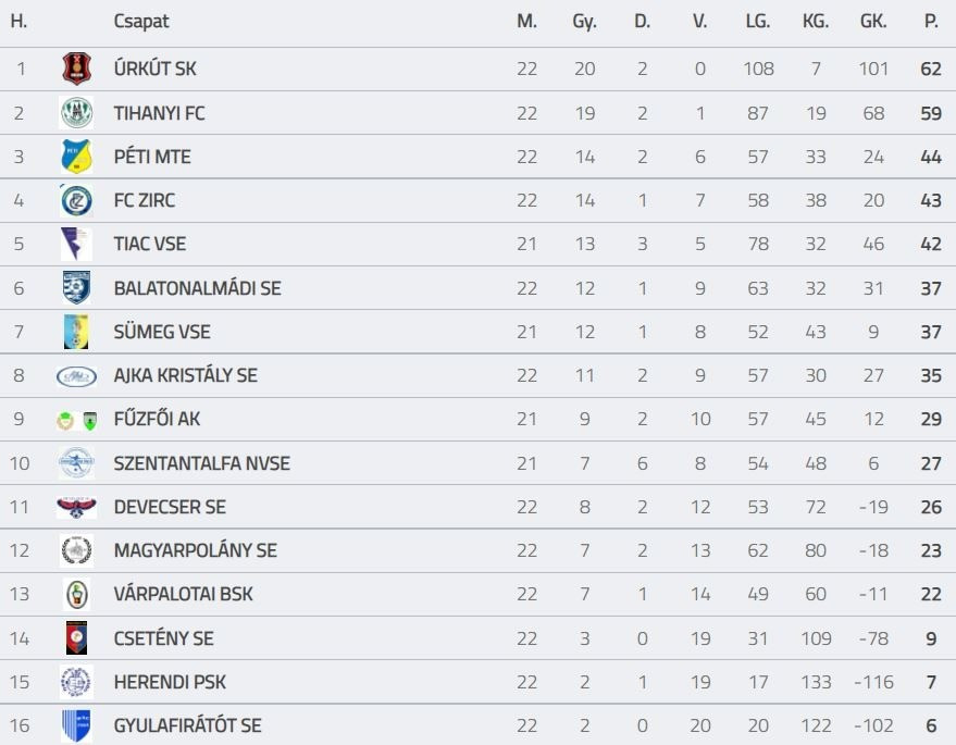 Az elmúlt hétvégén a Veszprém megyei I. osztályú labdarúgó-bajnokság huszonkettedik fordulóját rendezték. A listavezető Úrkút Balatonfűzfőn 6-1-re nyert, míg a szintén bajnoki címre hajazó Tihany komoly küzdelmek árán 2-1-re múlta felül a Szentantalfa csapatát.