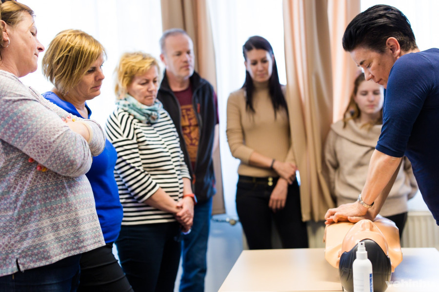 Dr. Módi Judit, a Csolnoky Ferenc Kórház osztályvezető főorvosa és dr. Nagy Richárd csecsemő-gyermekgyógyász, intenzív terápiás szakorvos emellett azt is bemutatta, milyen életmentő fogások segíthetnek abban az esetben, ha épp nem áll rendelkezésre a gyógyszer vagy mondjuk idegen test kerül a légutakba. Sajnos ezekkel csak kevesen vannak tisztában, holott elvileg ha van jogosítványunk, tudnunk kellene róluk. Ráadásul idegen test nyelése szinte minden gyerekkel előfordul, ha viszont tisztában vagyunk az alapvető újraélesztés lépéseivel, időben elkezdjük a mellkaskompressziót, vagy épp alkalmazni tudjuk a Heimlich-fogást és művi köhögésre tudjuk bírni az érintettet, míg várjuk a szakszerű segítség megérkezését, életet menthetünk.