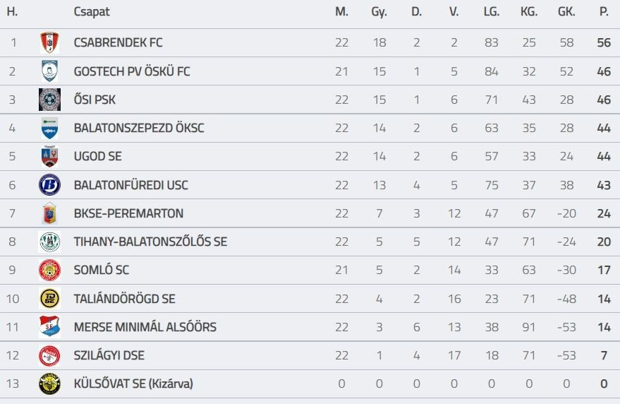 Hétvégén a huszonhatodik, záró köréhez érkezett a labdarúgó megyei másodvonal idei kiírása. A bajnoki címet már korábban bezsebelő Csabrendek 7-3-ra nyert a vendég Tihany-Balatonszőlős ellen, míg a Balatonszepezd szintén hazai diadalt aratott az Ugoddal szemben (3-1).