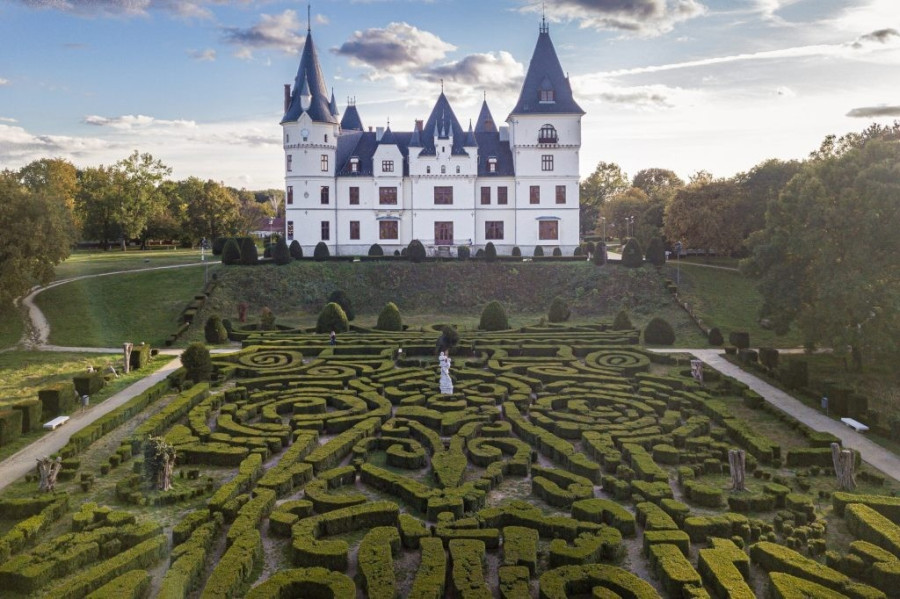 Valószínűleg csak kevés embernek nem jutna eszébe magát azonnal egy Disney mesébe képzelnie a tiszadobi soktornyos, neogótikus-romantikus Andrássy-kastély és a tiszafa-koszorúba fogott, középkori liliomot rajzoló bukszuslabirintusa láttán. Az épületet id. Andrássy Gyula megrendelésére Meining Artúr tervezte, amely varázslatos környezetbe illeszkedik be, melynek csak egy része a bebarangolható labirintus. Mivel a kastély közvetlenül a Tisza partjához közeli, ártérből kiemelkedő magaslatra épült, páratlan látvány nyílik innen a tokaji Nagy-kopasz vulkáni kúpjára, de a folyóval határolt angolkert is lenyűgöző.