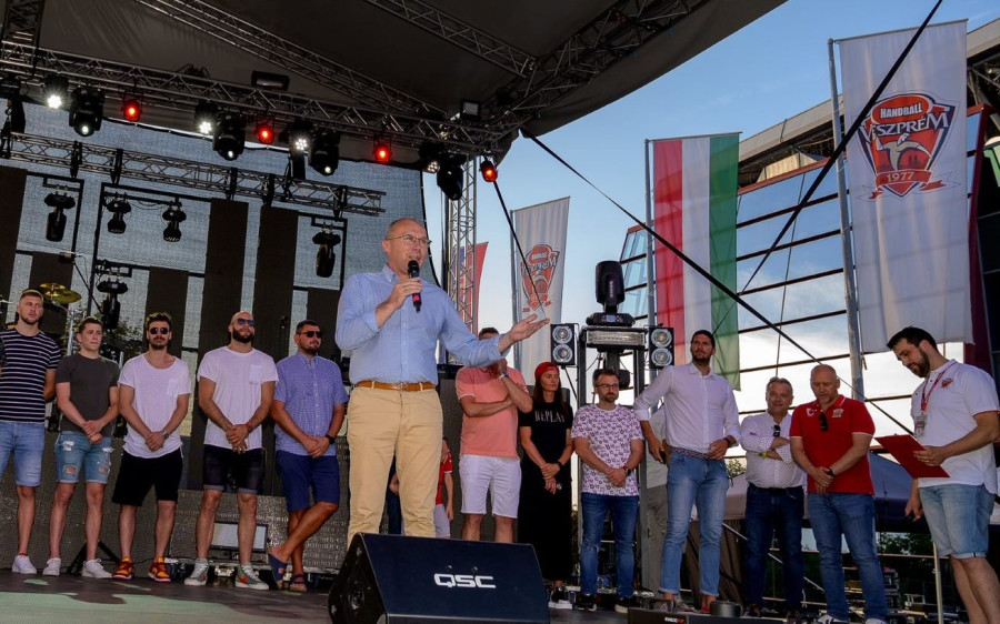 A sportigazgató után a csapat vezetőedzője, Momir Ilics is szólt a közönséghez, ő is megköszönte a szurkolást, hozzátéve, hogy 9 éve van Veszprémben és tudja, nem idén játszották a legjobb kézilabdát, de minden erejükkel azért küzdenek a továbbiakban is, hogy sikerüljön elhódítani a várva várt BL-serleget.